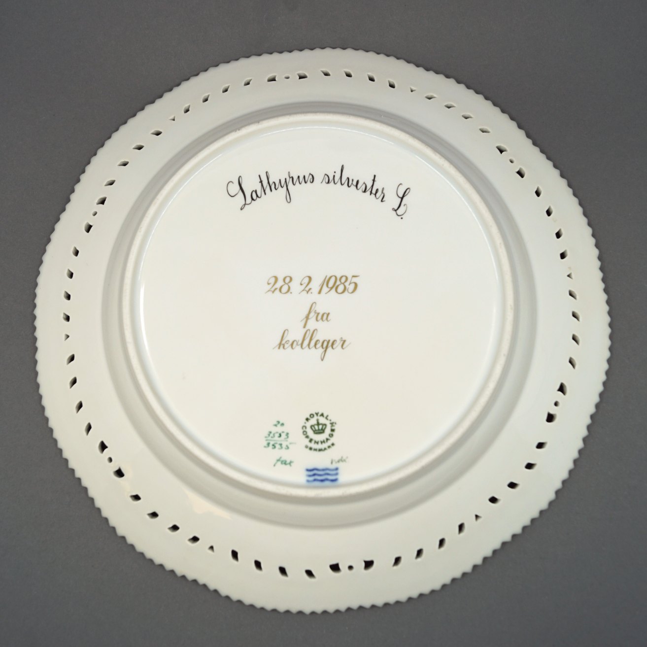 oyal Copenhagen, Flora Danica porcelæn; Middagstallerken #3553/3535 med gennembrudt kant.