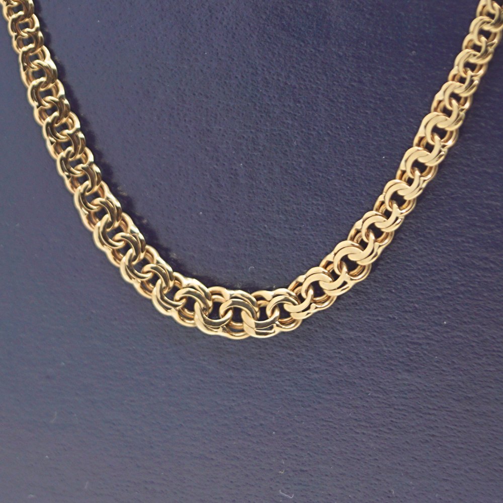 Bismarckhalskæde i forløb, 8 kt. guld. Monteret med kasselås samt to sikkerhedslåse.